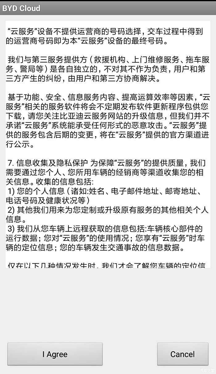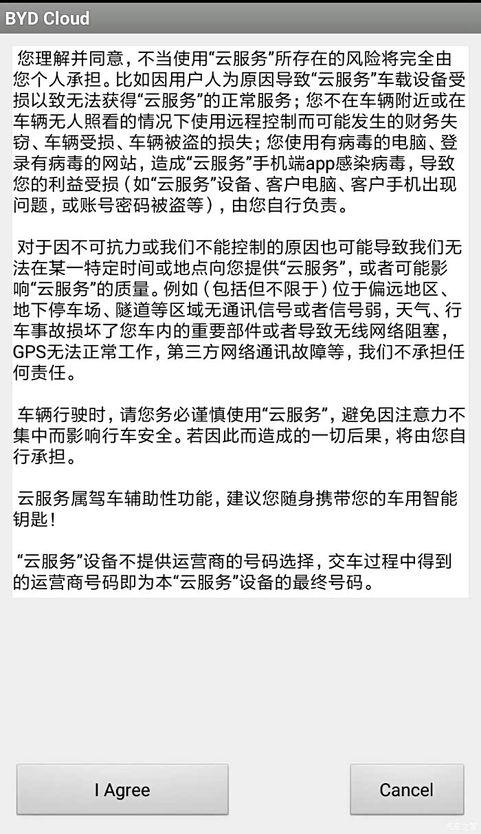 当初选车的时候,云服务作为必选项之一,宋dm,老唐8和唐100的高配车型都是标配云服务。但是云服务在新唐80高配豪雅版的配置表里面是“O”--选配的,当时也没太在意这个O,后来签合同后连续拨打比亚迪客服电话咨询下来,一致认为云服务确实需要选装,而且车子必须在出厂的时候提前装配好云服务模块。听到这里,叹叹气,MD云服务没有就没有呗,反正遥控钥匙也可以提前遥控开空调,只能这么安慰自己了。