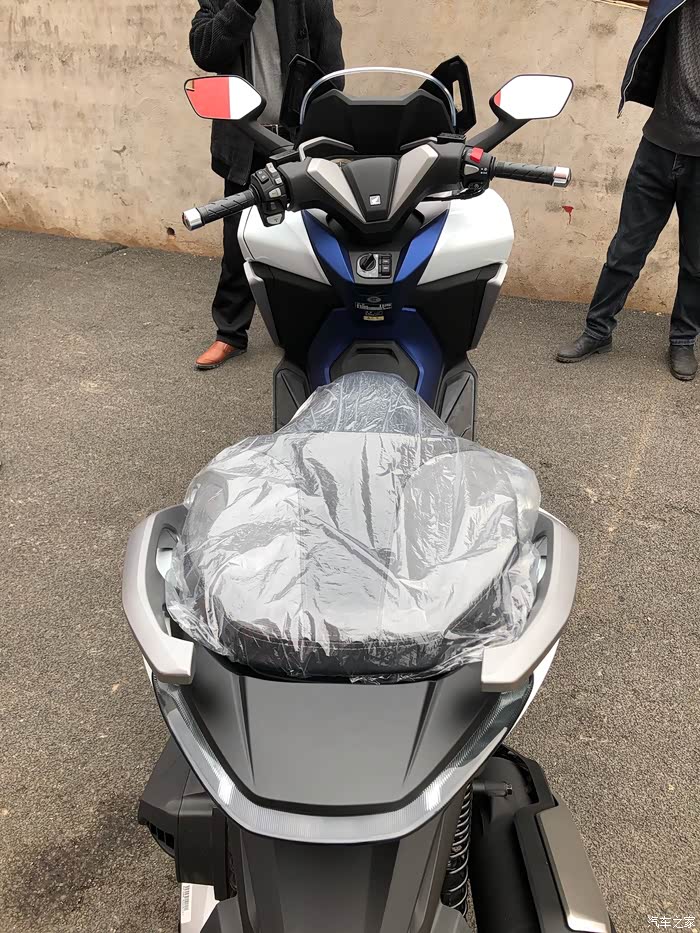 黑色车子我没看到,个人非常喜欢秋月白这个颜色,搭配的蓝色是磨砂蓝,看着有质感,而且不会留下指纹。我本人也是定的这个颜色。感觉秋月白更适合年轻点的车主。这款车不管是原地用脚尖挪车还是支起大撑都非常轻松,tmax支起大撑也很轻松,我那台F700就得使出吃奶的劲呢。