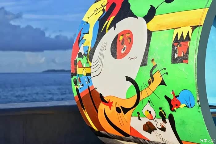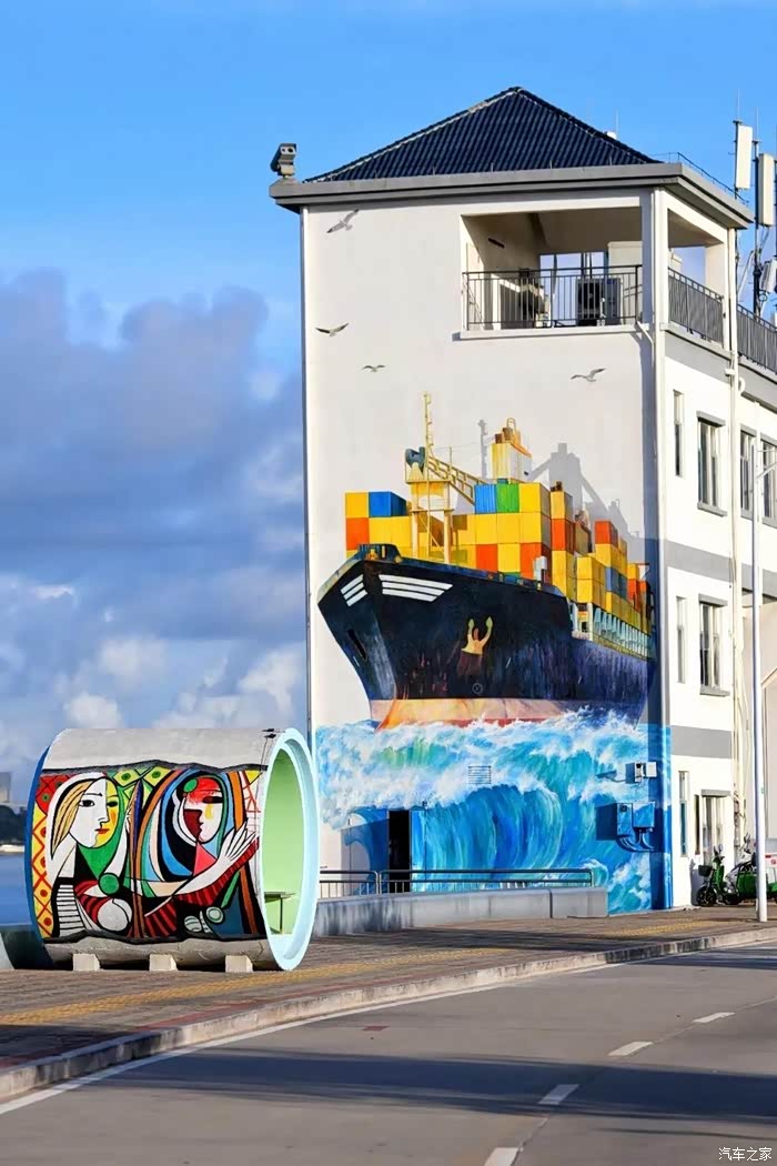部分建筑物外墙、水泥管外部都被画上了颇具特色的彩绘图案,在蓝天白云的映衬下,别具一番风味。