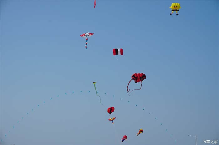 偶遇一群风筝爱好者,开车过来一起放风筝。