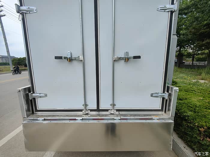 自己定做的六面保温货箱:3米×1.9米×1.5米,两侧翼展式,直接放置使用。