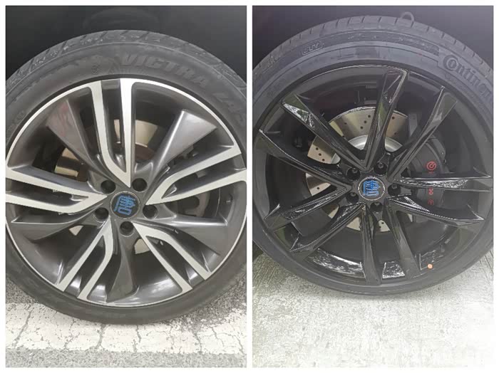 大脚对比,22寸是霸气,但是唐100的20寸大脚也不差