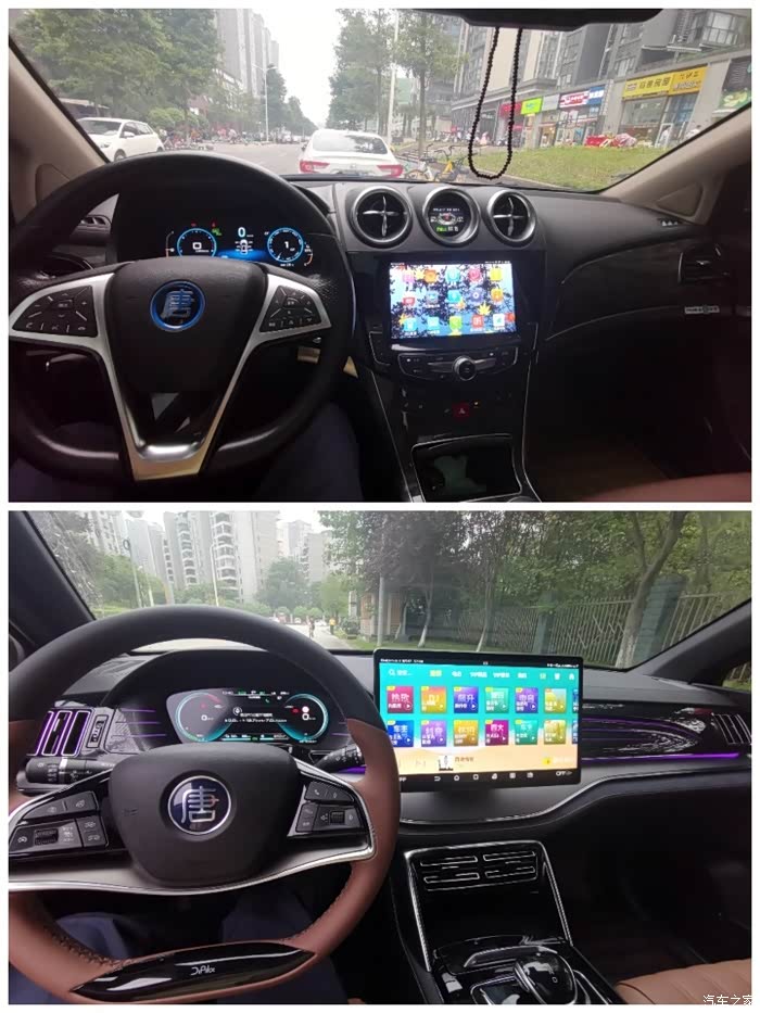 3、内饰:说到内饰这一块儿,那21款唐可以说完爆唐100了,不管是内饰的旋转大屏,还是座椅设计,氛围灯,后排空间,空调………全面吊打态势!同样是真皮,老唐开久了,坐姿不舒服,很累,新唐的坐椅非常爽,至少现在我还没有觉得新唐开着很疲惫很累!