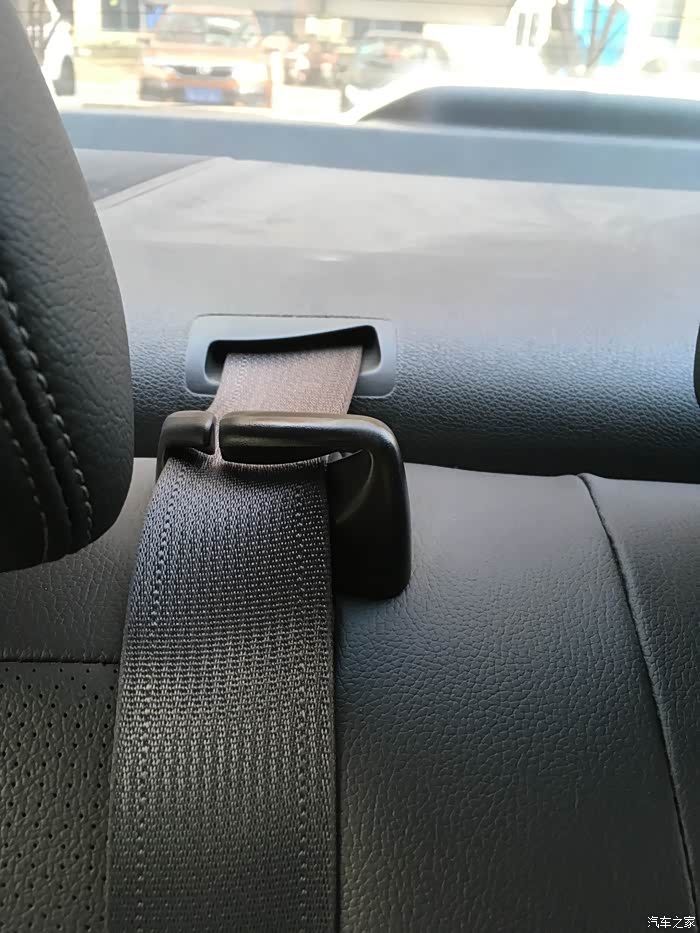 下面说一下后排座椅放倒:首先就要把这个中间安全带从卡扣里取出来