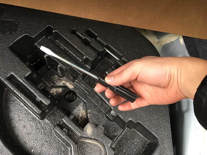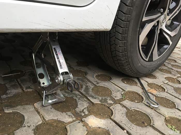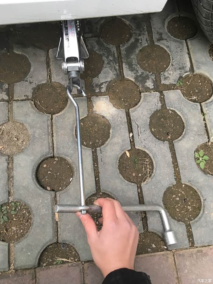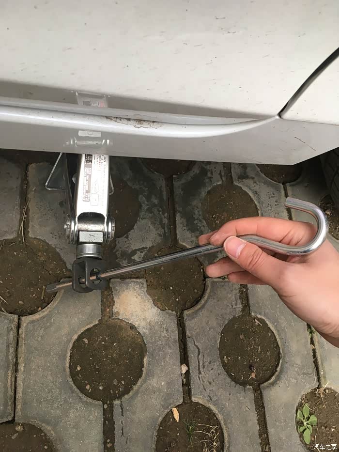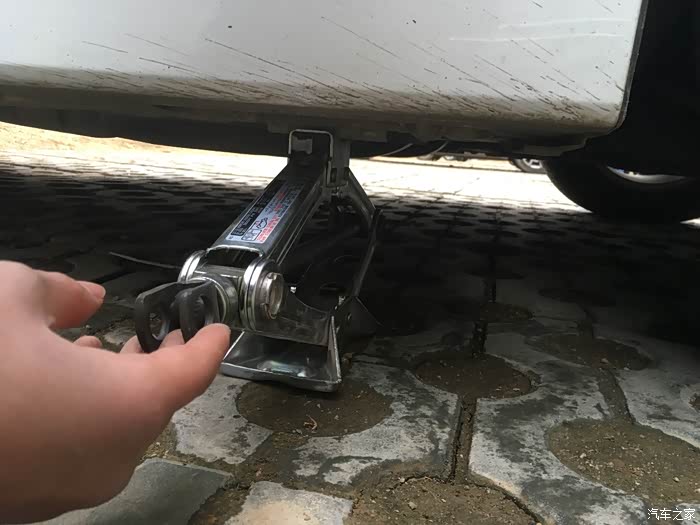 还没拖住车身的时候其实用手拧更方便,顺时针扭动千斤顶就变高了