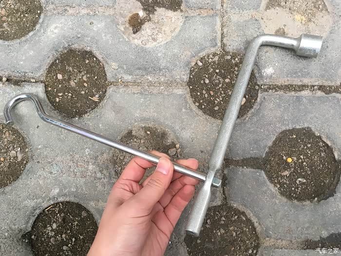 这支粗的那头就是扭车轮螺丝的扳手。