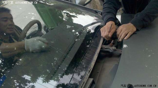 9.28号下午到4S继续检查A柱漏水原因,最后回复是窗户玻璃脱胶了,雨水顺着玻璃漏下去的。我仔细看了看,确实是玻璃松了。找到汽车玻璃店,花了100元,重新安装玻璃胶。前挡玻璃取下后,发现漏水的位置,确实没有被胶粘上,因为被师傅用工具锯割胶时,漏水的位置就没有与切割工具接触。看来奇瑞车在装配时,工人对这个问题没有认真对待。希望以后杜绝在出现同样的现象了。