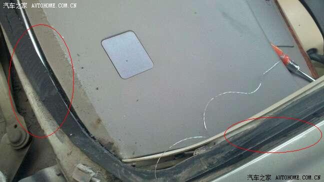 A柱上端漏水了。到4S做5万公里保养时,要求查找原因,解决问题。昨天下午取车时,4S说检查了天窗排水,疏通了内部排水管,没有问题了。但是昨天晚上下雨,今天早晨开车时,发现原来的位置又漏水了。说明原先的问题点没有解决。有时间还要再到4S去。图片上传,请各位老师帮忙分析一下,谢谢!