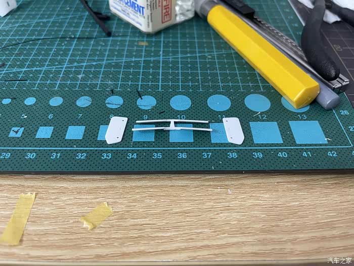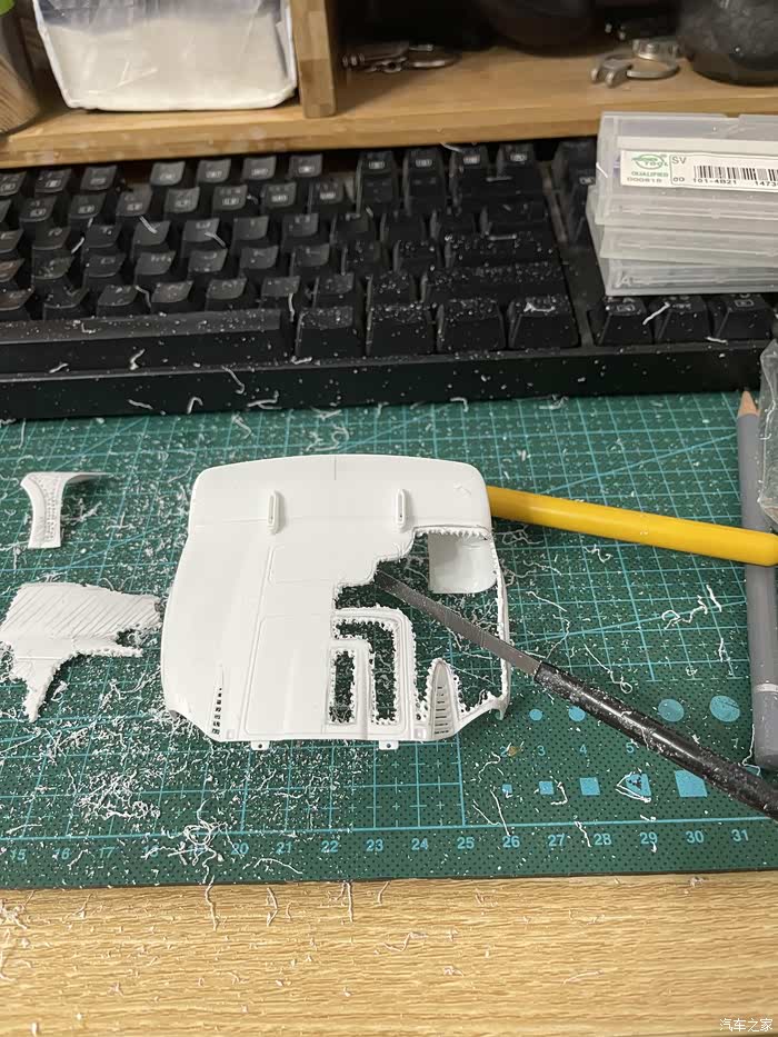 车身处理完成,组合后再对驾驶室进行镂空,标注施工区域。