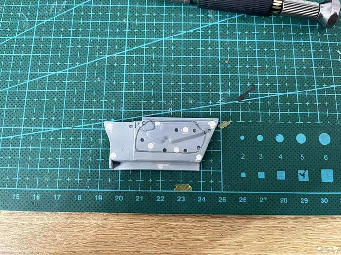 对照实车图对发动机进行修改,虽然田宫把管线开出来了,但不太真实,也影响后期的管线添加,所以需要去除。