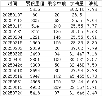 开半年,表显油耗是7.6,加油量和里程计算油耗是7.94,0.3的误差对吗?各位车主是多少?