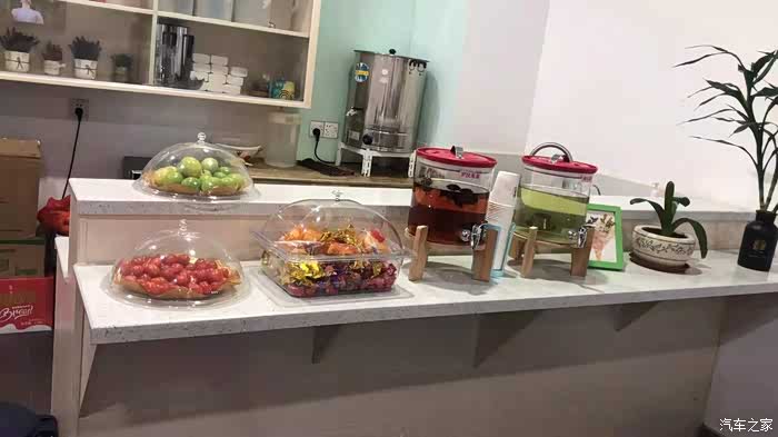 客休区前台各种颜色鲜艳的新鲜水果和饮料成功吸引到我的注意