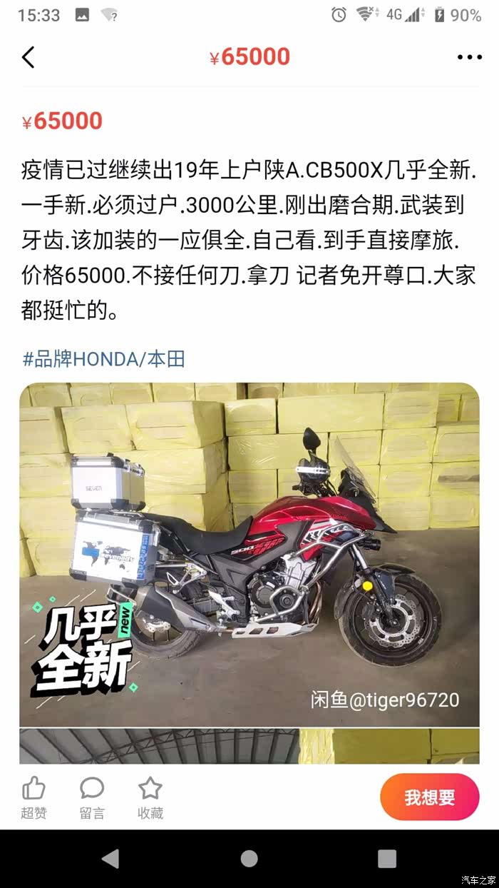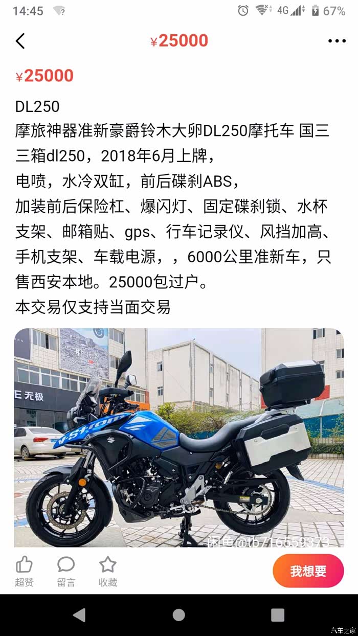 某鱼发现一台3000公里的CB500X,新车7.2税6000,落地8个了,他二手的6.5,才3000公里,我觉得还可以。准备下手了,后来想了一下,发现一台6000公里的dl250,卖2.5,一下能省4个,4万想着存起来,250也可以摩旅.
