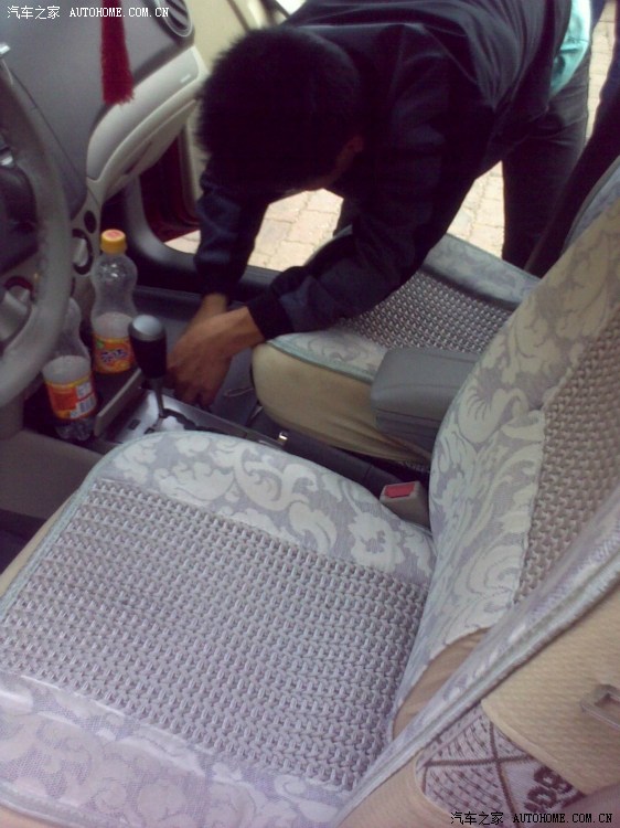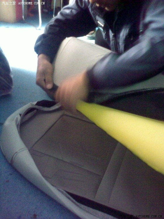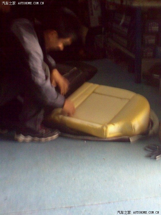 在网上买的座套用了一段时间后发现不板正了~~就准备更换个真皮的算了!提前5天去汽车美容订的皮子,今天去给装上了。一共装了3个小时左右,只有一个人给我在弄,所以慢些!