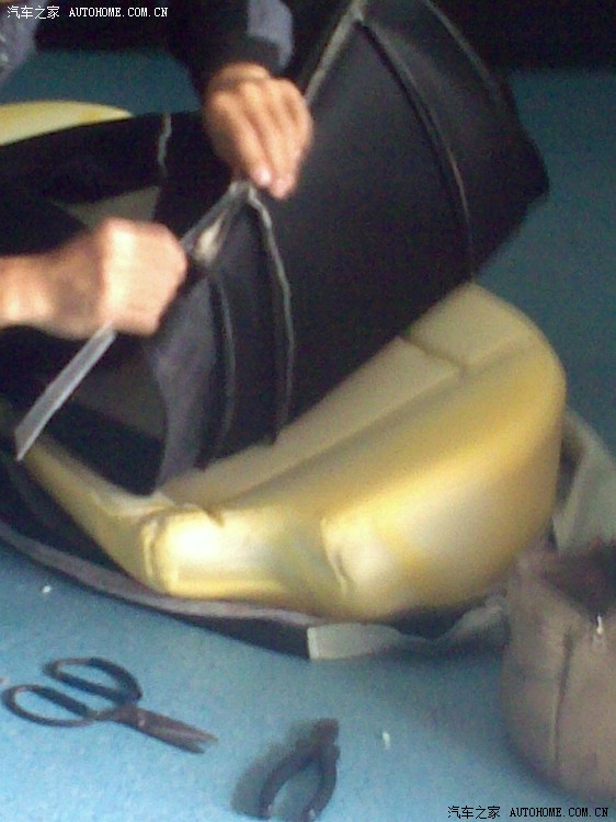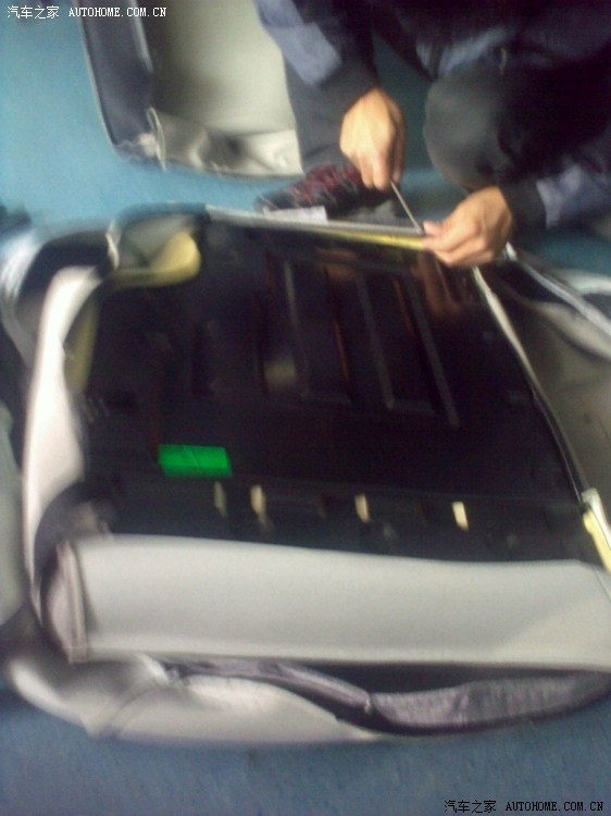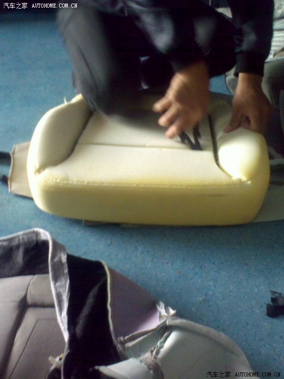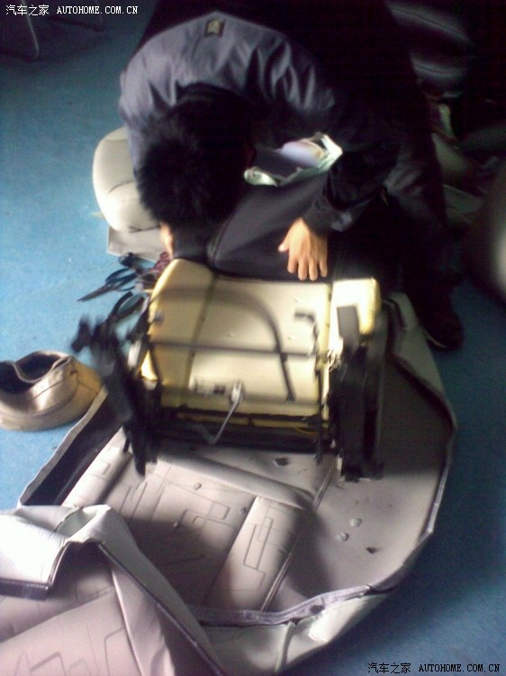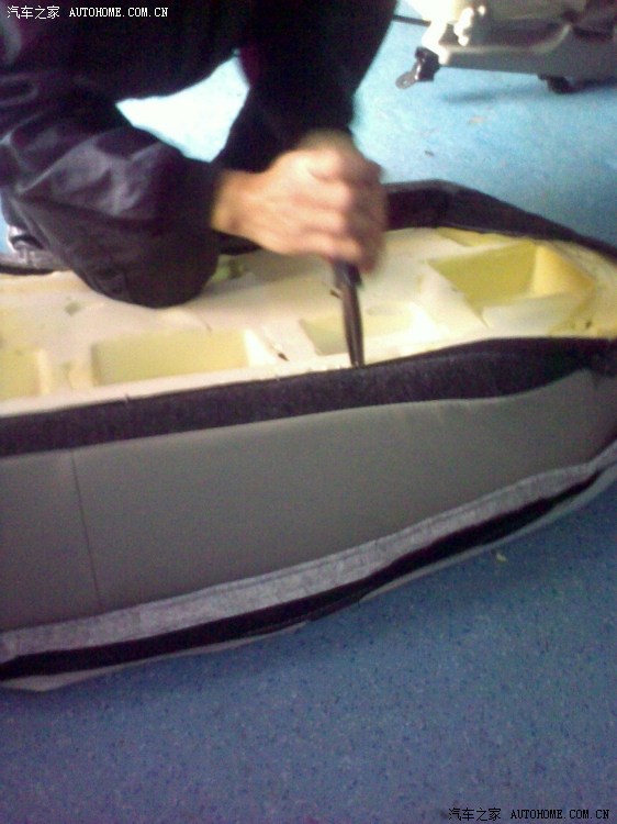 首先上场的是后排坐,被全部扒干净!并且用刀割开原座套在海绵每个夹缝处的硬胶皮条备用↓
