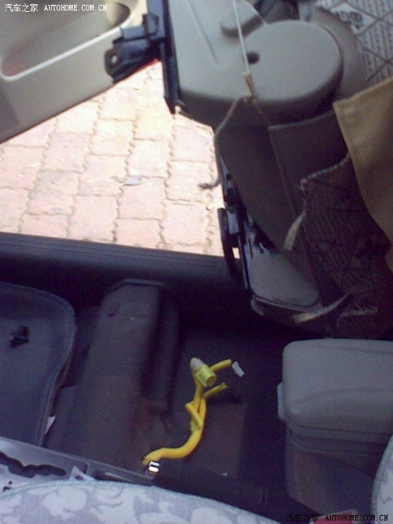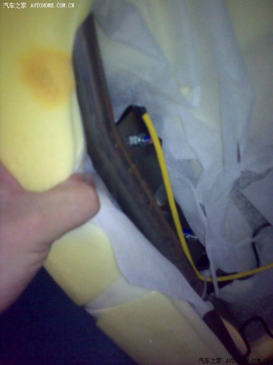 原车套被拆下了,这是侧安全气囊一侧,这根黄线的上段连接的就是安全气囊了↓