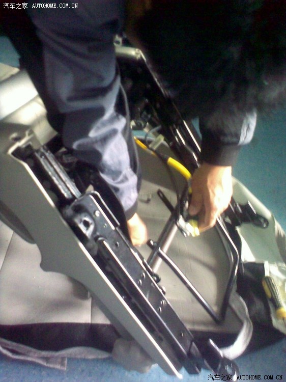 这是前排座椅,正在把靠背跟座垫分开,下面的螺丝正在被拆掉↓