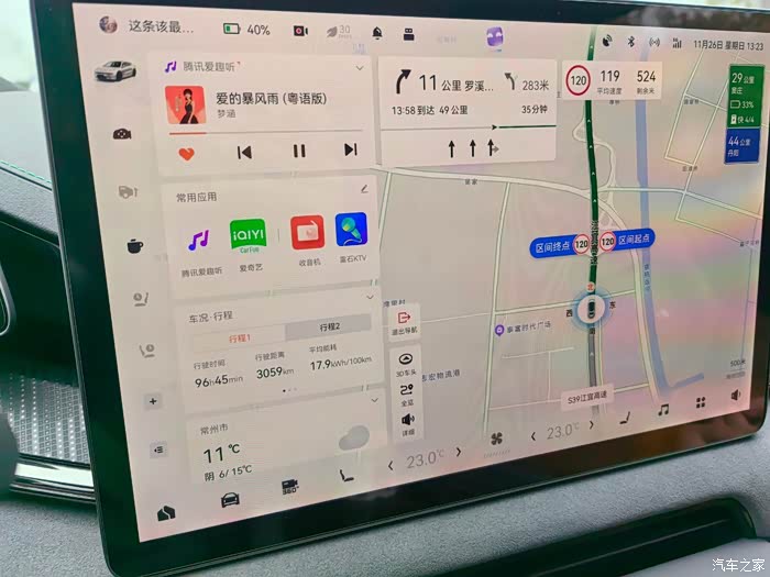 电耗才是考验电车能耗的时候,但是这趟行程的,记得那时候的气温也淡不上是完全冬天,大概10-15度。我的车是U版双电机四驱。出发的时候已经在市区上班通勤行驶了靠近160km,能耗大幻在18左右,然后上高速开至路程的一半,电耗上升到了18.9。这个电耗我觉得很喜人了,按照650的标续,100度的电池,在这个条件下可以跑520公里多(当然不可能跑干了再充电),至少不会发虛,续航达成率80%了,满足,等到了天更冷的时候再测试下看看。