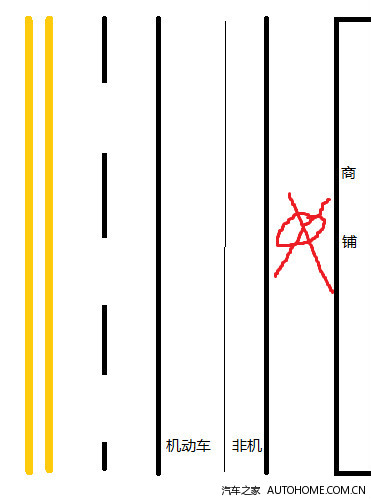 如图,这是非常典型的道路布局,左侧主路两条车道,再往右是辅路,辅路一半机动车道,一半自行车道,再往外就是马路牙子,马路牙子上就是商铺。