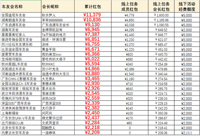 7月车友会线上任务荣耀榜揭晓!25支车队获 2000+ 元线下活动经费