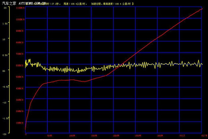 【0--400米加速】,换挡时候G值相当高!加速到350米就减速了,可惜了,结果如下: