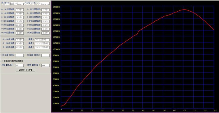 【 0---160公里/小时 】 加速曲线,结果如下: