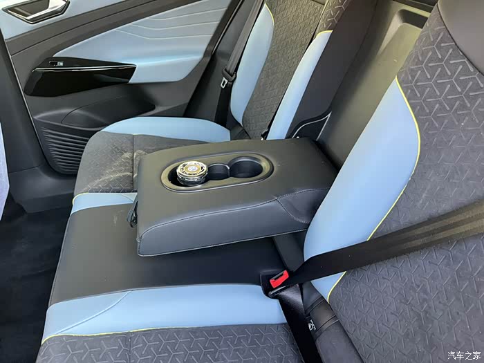 后排,如果不用动的话,就可以把这个手扶放下来可以放一点喝的在里面。