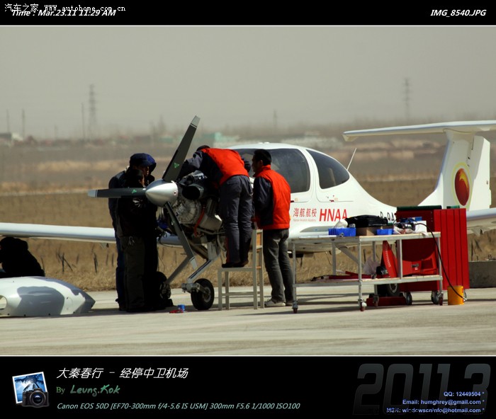 客机经停宁夏中卫机场,几名航校的师生正在大风中研究着什么...