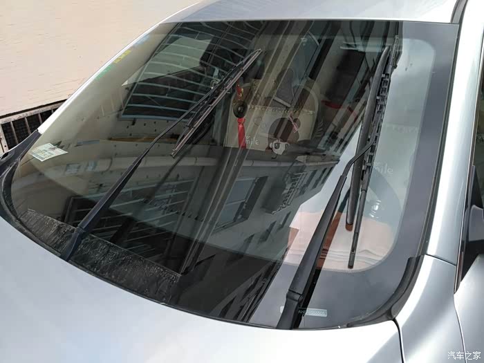 看着最右边雨刮器与胶条接触的位置是卡住的!