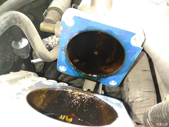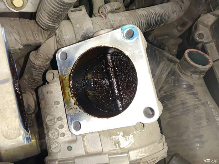 检查进气歧管、节气门积碳严重,清洗,更换废气截止阀及单向阀,顺便安装机油透气壶,截流机油蒸汽,减少积碳生成诱因。