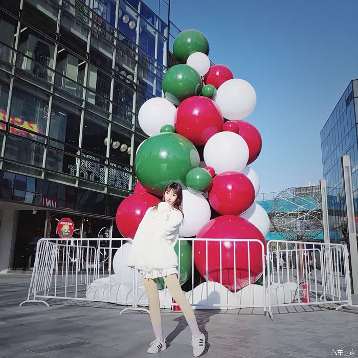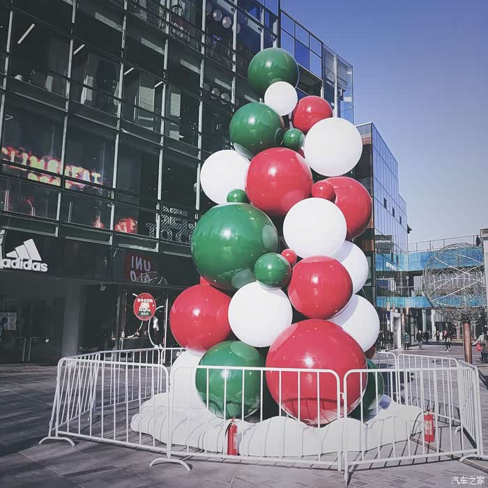 但是这棵就十分富有设计感,是由白红绿三种颜色的气球形状的灯拼凑而成的,