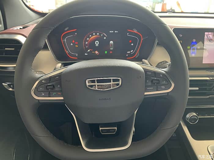 内饰配置方面,搭载了10.25英寸高清中控大屏、7英寸全液晶组合仪表、GKUI吉客智能生态系统、T-BOX远程控制系统、带空气净化器功能自动空调、座椅加热等