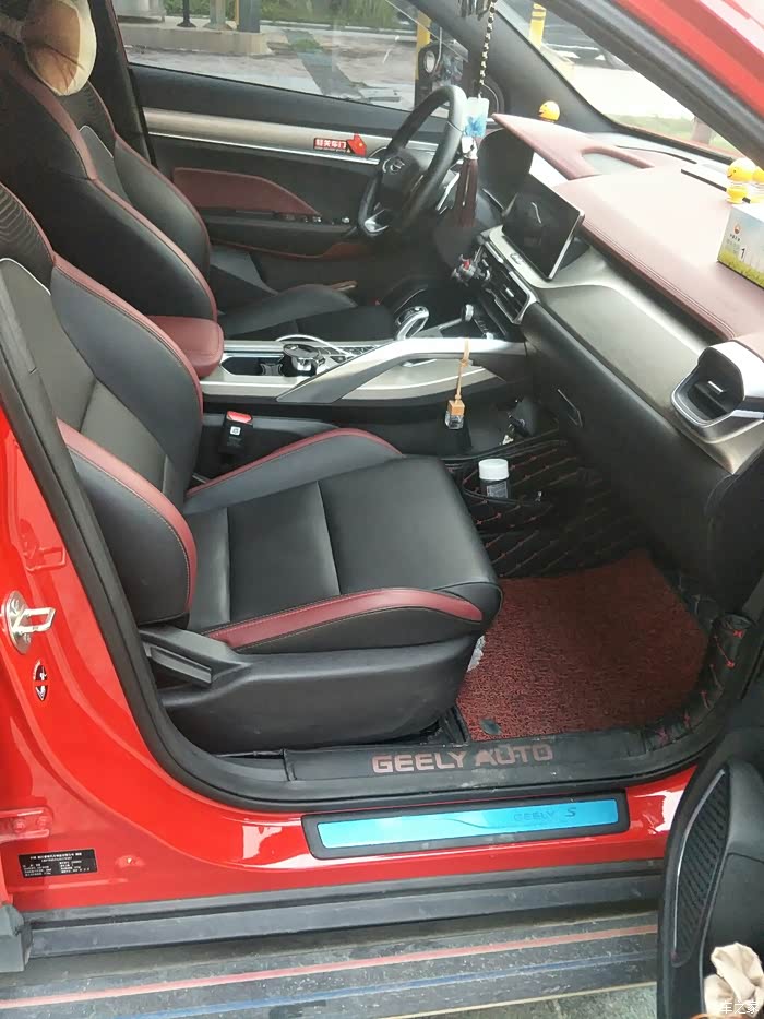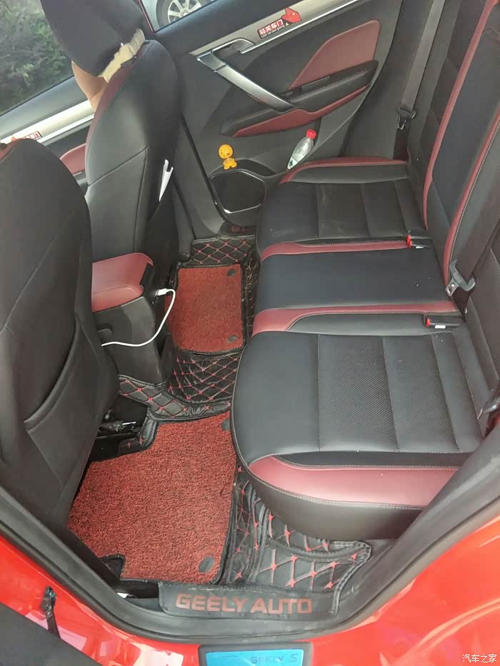 再后面就是买脚垫,花了200块,买回来花了40多分钟,给他装完,以前的是黑色的垫子,现在是红黑的,现在整车都是红黑相交的,这台是运动款的低配,没有黑车顶,上次咨询了店的老板,300块贴黑色!这几天正准备贴!