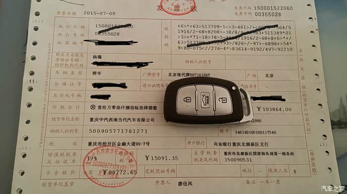 提车当天起了个大早,因为想着最好能一天之内完成上牌(没办法,急性子改不了)。然后到了4S店小马陪同提车的人没吃早饭都已经到了。果断不能忍,居然比我还早。火速刷卡付钱,105800,保险第三者一百万一共5100多,上税花了8877,果断12W以内完成,4S店还加送两年质保,送挡泥板,抱枕,头枕,脚垫什么的,虽然不是什么值钱的,但是心里想着还行。而且是现车,现场和小马工作人员一起验车以后就开始装各种东西了,期间还谈好了上牌以后再来贴膜的事情。就这样立马拿着临时牌照出门,赶去缴税,然后找熟人就上牌正式完成购车了。