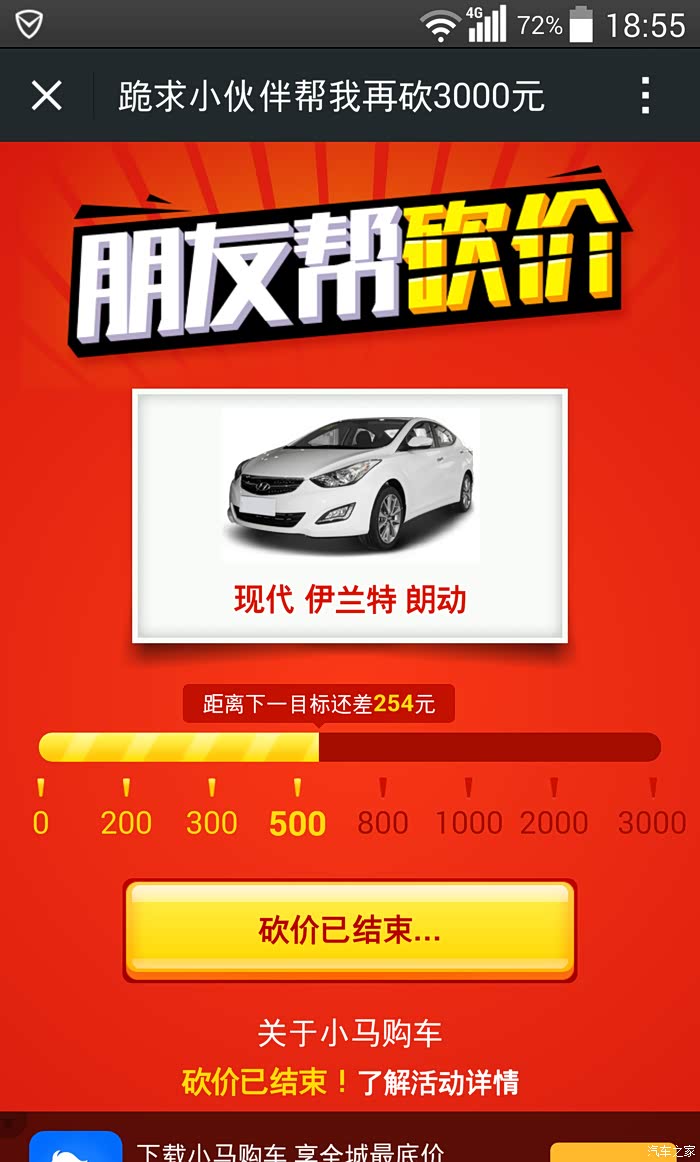 小马购车朋友圈砍价,嘿嘿,朋友太少了,只砍了500。