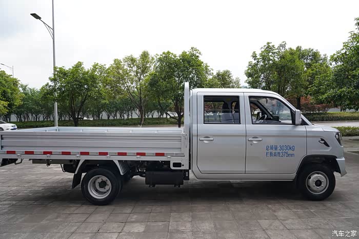 货箱长3.01米,宽1.8米,栏板高37.5厘米,单排版的货斗长3.7米。