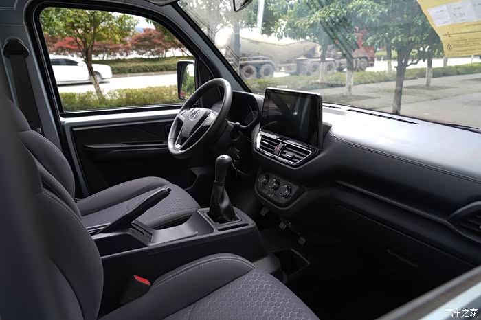 个人认为车内最大的亮点绝对是中间那块10寸大屏了,真没想到现在小货车也有大屏可以使了,重点是可以触控,可以手机互联,免去一个手机支架的操作,想想还是挺爽的。