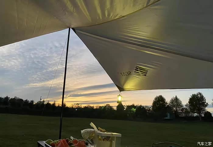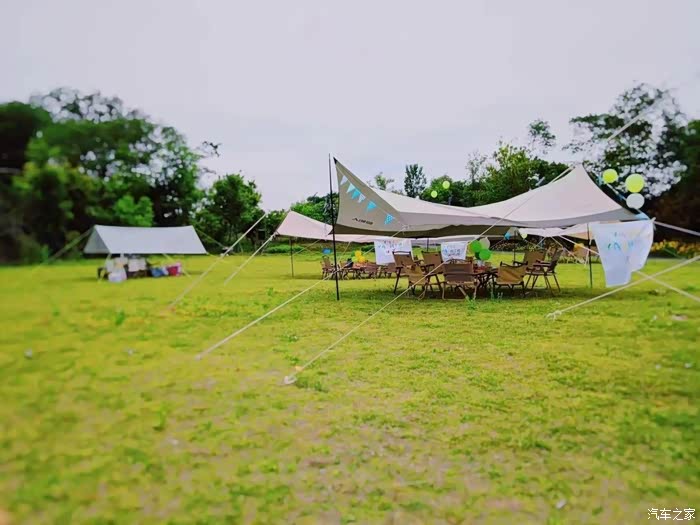 草地上搭的帐篷,方便大家坐在一起聊天。今天天气不错,应该带个风筝来的