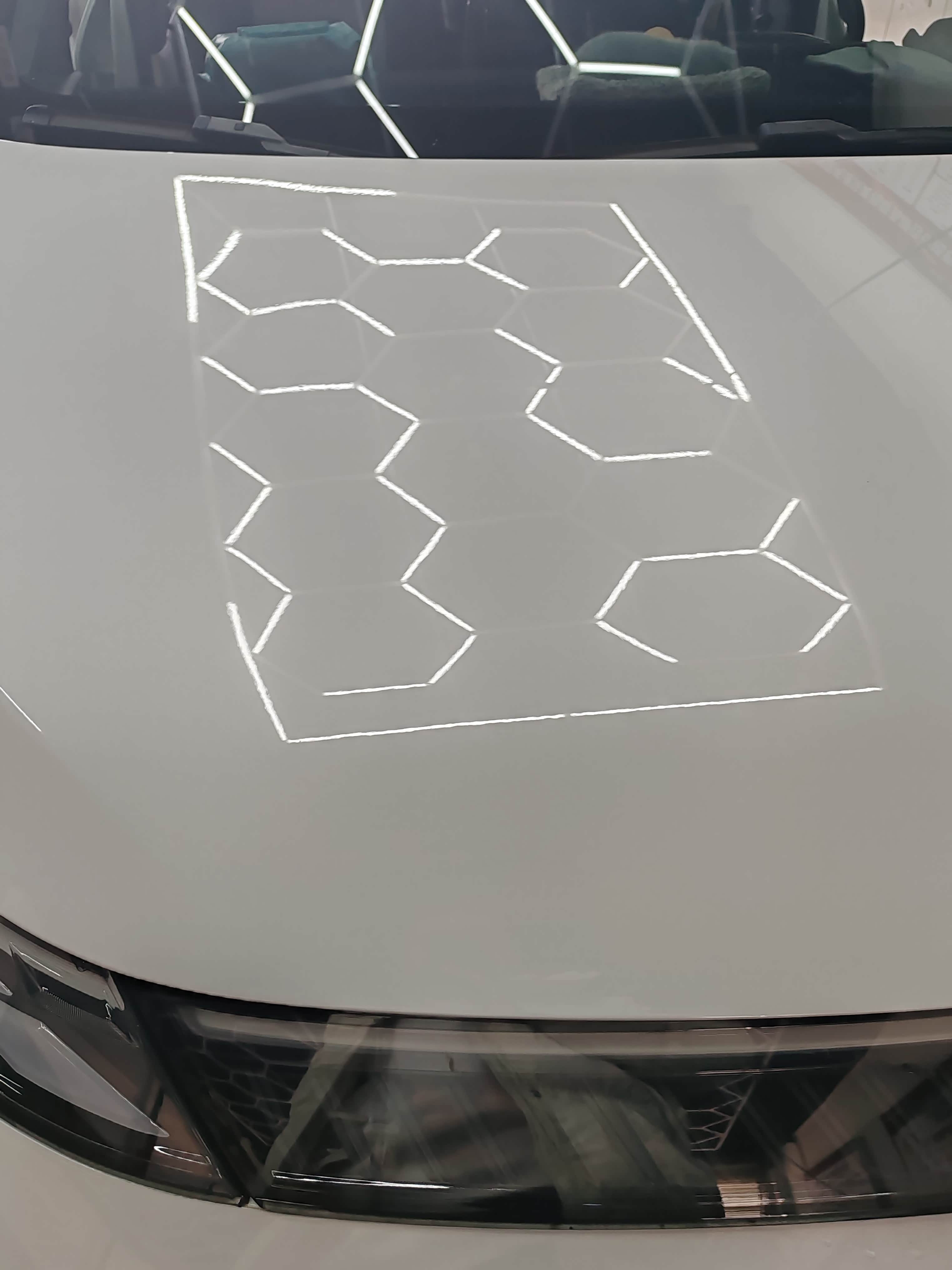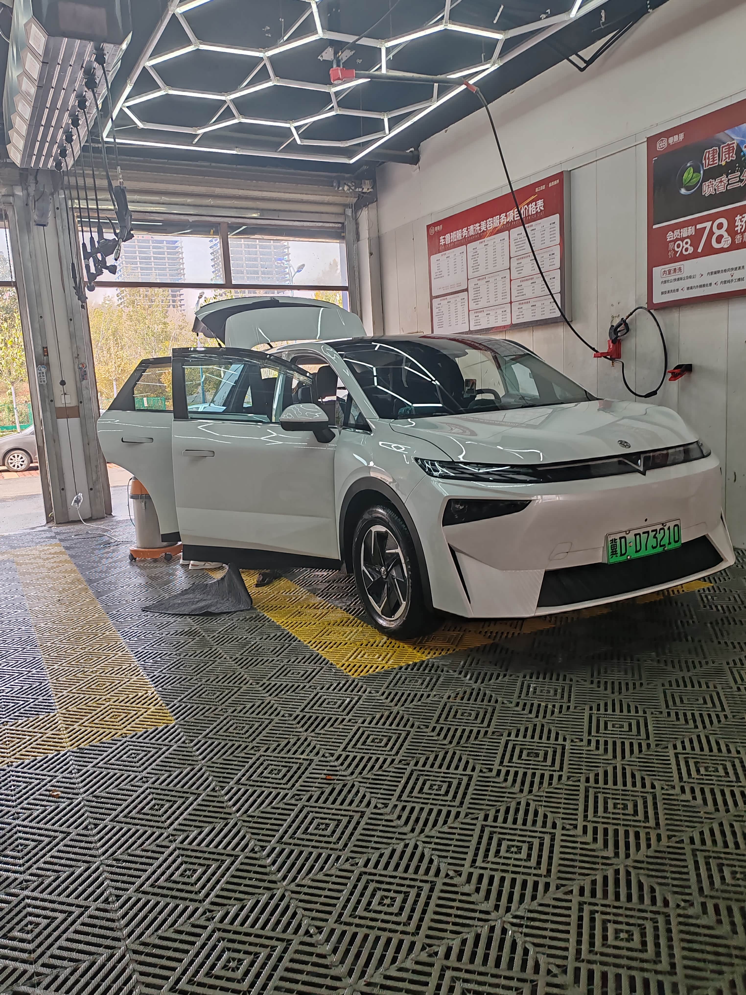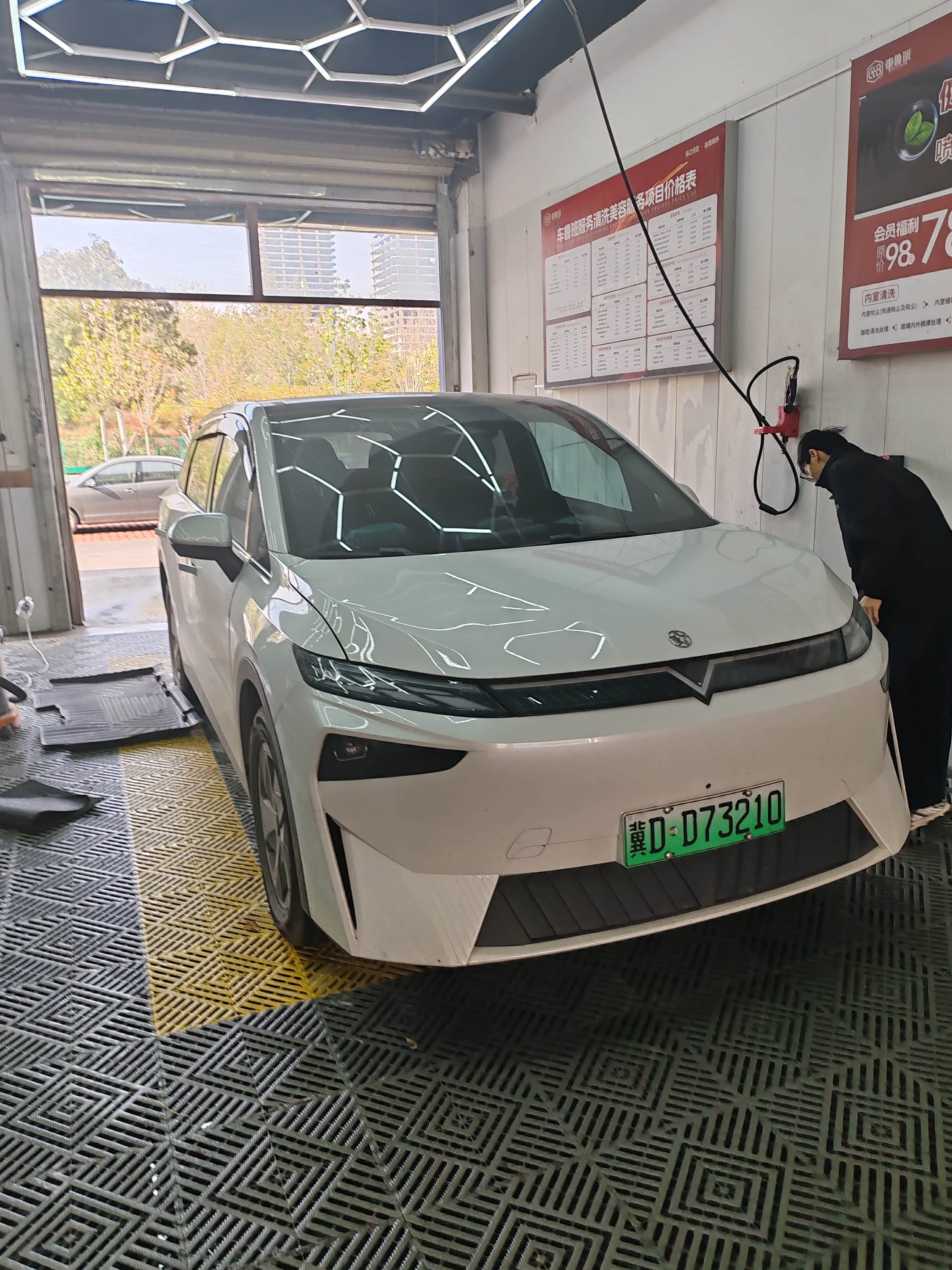 师傅先给轮胎打上清洗剂又给车身简单冲洗一下打上泡沫三个师傅给它按摩,我看着都舒服(*¯︶¯*)!洗完之后闪闪发亮帅气的启辰VX6又回来了!它的漆是那种白色的珍珠漆灯光一照闪闪发亮!买的时候还加了2000块钱呢!前进气格栅是自动的,也洗的油光发亮!