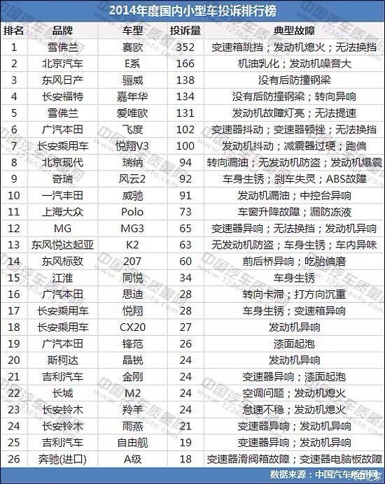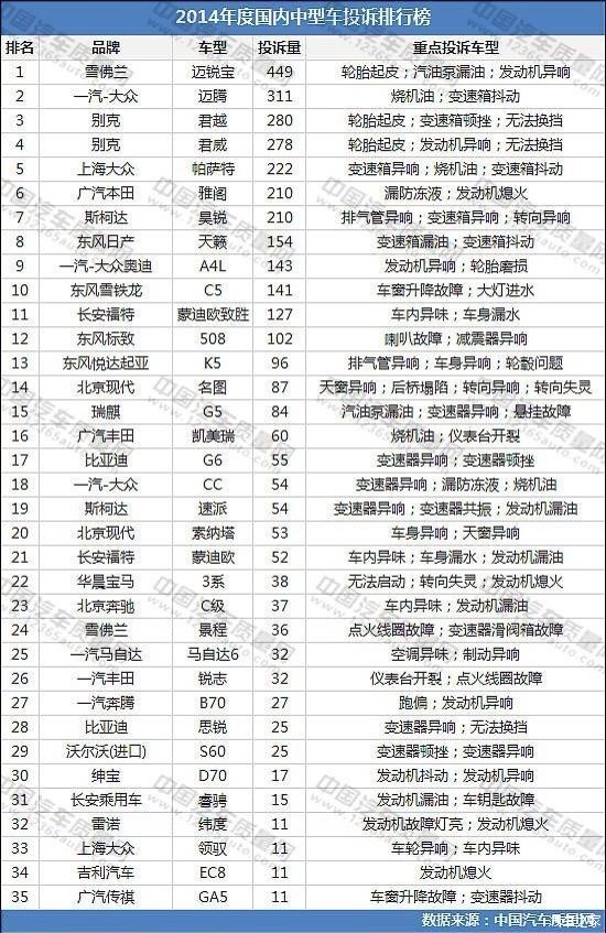315.问题车辆排行榜!迈锐宝很光荣,排第一