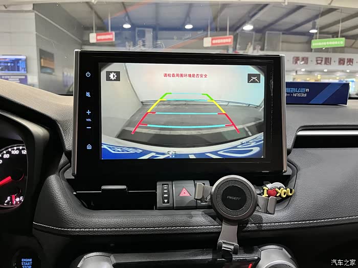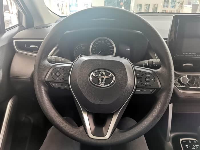 坐进车内,浓郁的丰田气息让我倍感亲切。车门板的缝线和中控台大面积的搪塑材质,摸着都非常扎实。而三辐方向盘和大尺寸液晶屏,也让它的科技味十足。