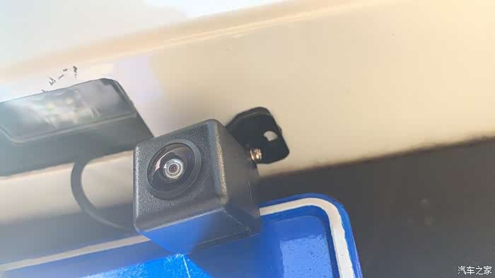 3、随之选择倒车摄像头安装最佳位置并将其固定好,一般都在牌照灯的位置上。
