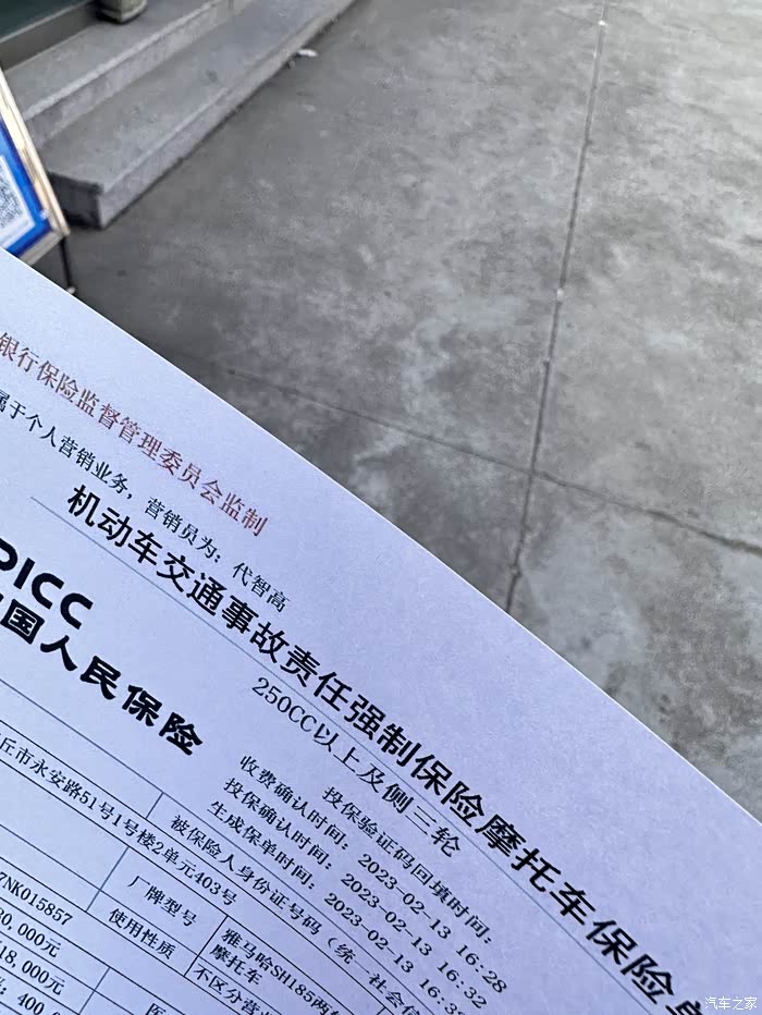 由于摩托车的保险和车管所没有联网,