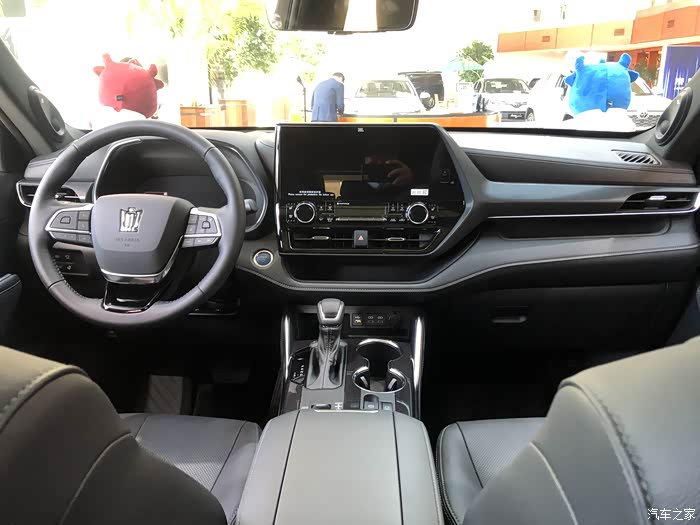 前风挡两边放个两个小公仔,看着很可爱的样子。而且销售人员跟我介绍说,皇冠陆放的前风挡和侧门用的都是多层隔音玻璃,隔音效果也要比其他车型更好一些。