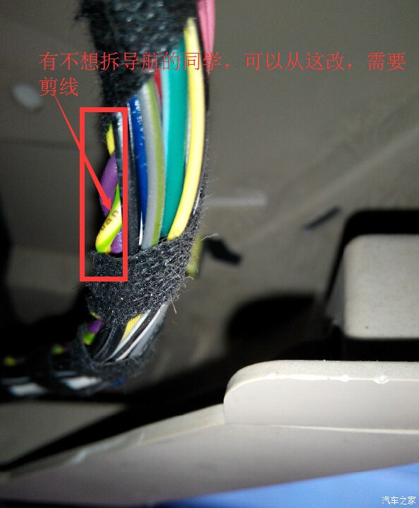 就是这里啦,剪断,重新对接,就好了,相对而言,这个是最省事的,因为导航后面的那个插头不太好拔