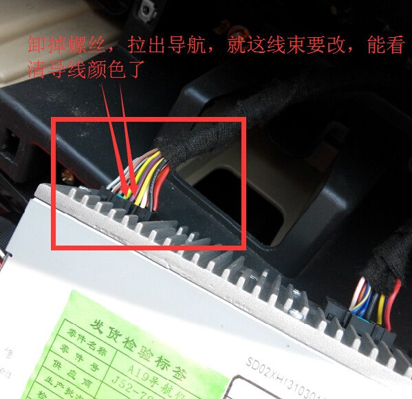 2、拆开导航或者CD,看后面线束(CD的这个主线束和智尚导航是一样一样的,可以直接插上),有部分车(已知2部,都是14年5月份的智尚)线序已经是好的,就是5接紫,4接黄绿,如果线序不是这样,那就需要改正!