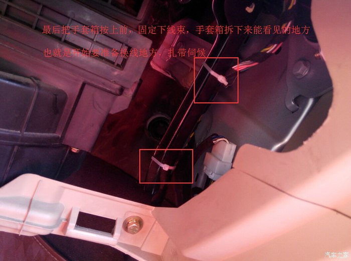 首先是根据E3整车电路那个电子文档里,决定从手套箱那改,但不是最佳的改法,如果你不在乎剪线而为省事,这地方是可以的