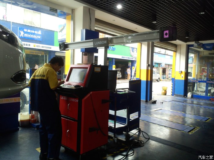 装完胎做了个四轮定位,大家尽量选择这种3D的四轮定位仪器,效率高,精度准。