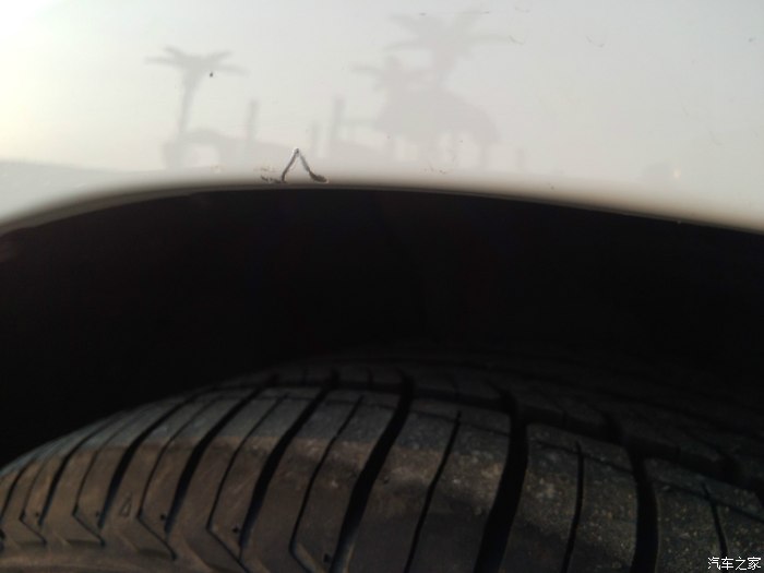 这是从轮毂中心往天上拍的,现在轮胎没那么凹进翼子板内。