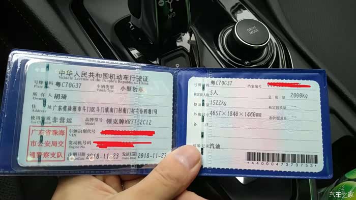 本人于11月23日在珠海领克4S店提车03劲 黑色 不算手续费1623000
